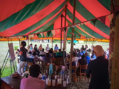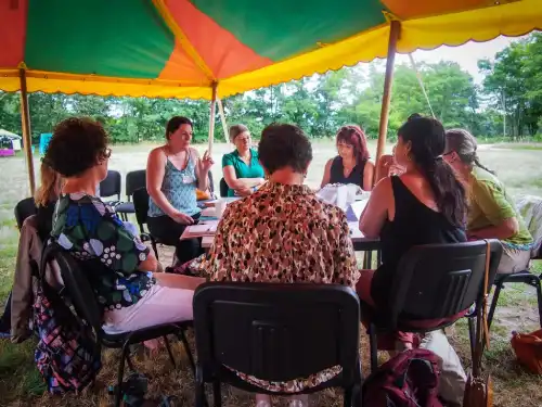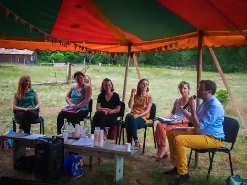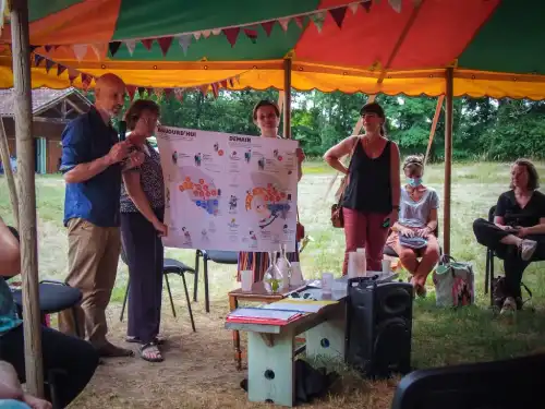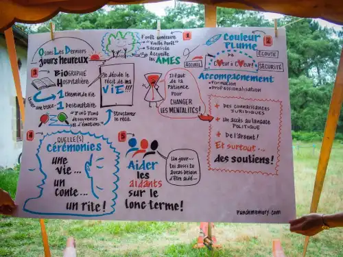 Le jeudi 1er Juillet 2021 nous nous sommes réunis entre professionnels pour partager nos expériences autour du sujet de la mort. Nous avons débuté par un temps d’inter-connaissance animé par DÉCALEZ, puis nous avons poursuivi par la table ronde avec comme intervenants : Elia Conte Douette (forêt cinéraire d’Arbas), Clémentine Blondon (Couleur Plume), Noémie Robert (conteuse, recherches sur les rites funéraires), Fanny Previsani (accompagnatrice des aidants) et Cécile Constantin (biographe hospitalière)… Nous avons ensuite participé à des ateliers de réflexions sur des sujets différents liés à l’innovation autour de la mort sur le territoire sud-gironde. Enfin, les agitateurs d’événements et semeurs d’improvisations que sont DÉCALEZ nous ont fait une restitution de la journée. Il ne restait plus qu’à passer à l’apéro ensuite ! ????